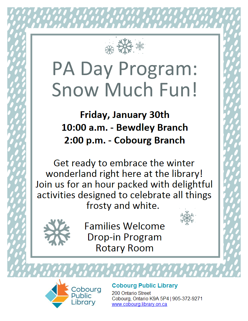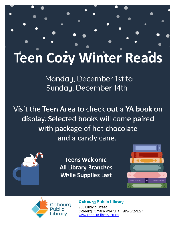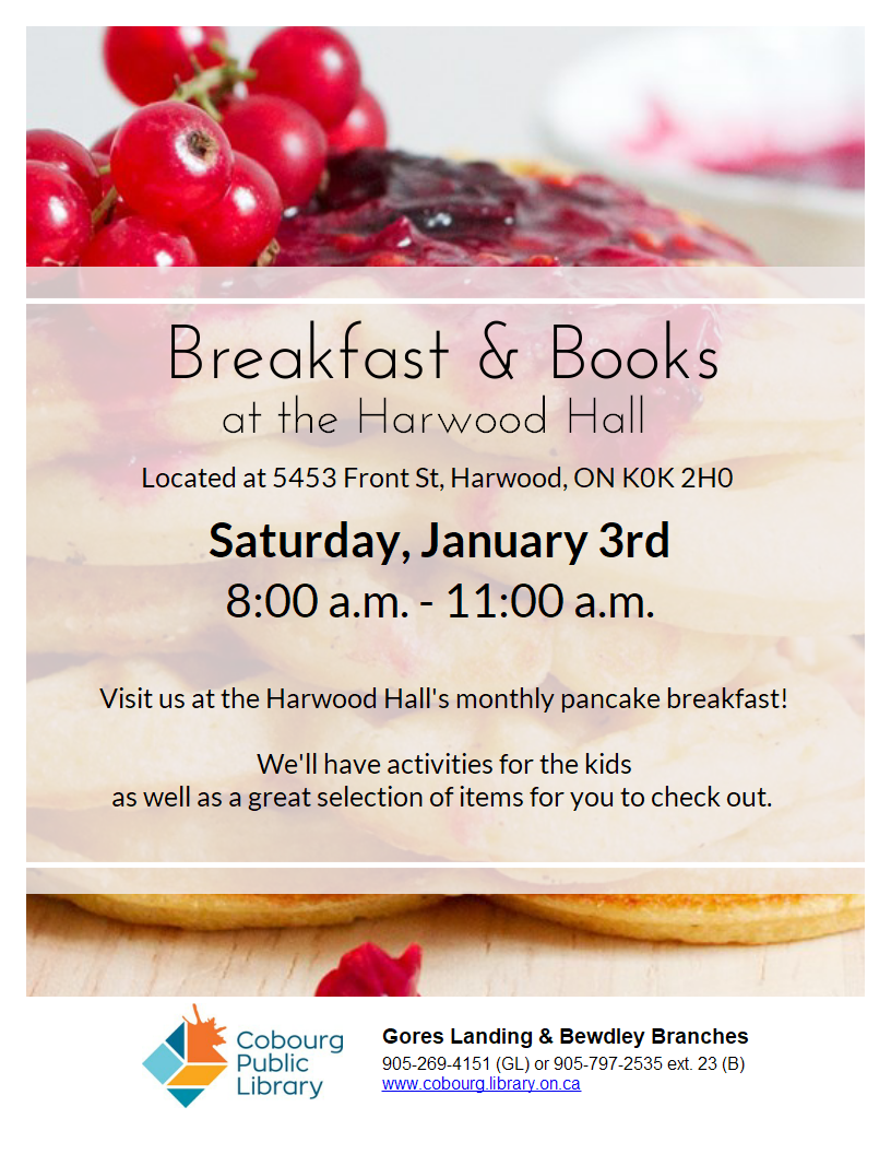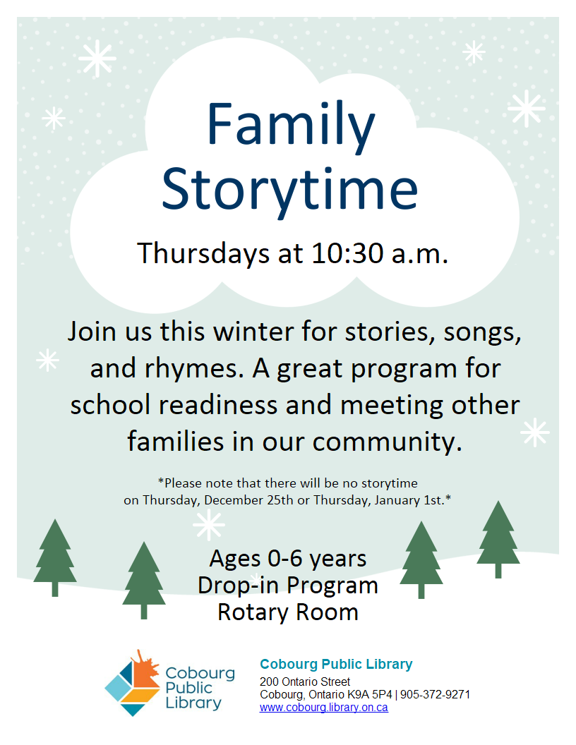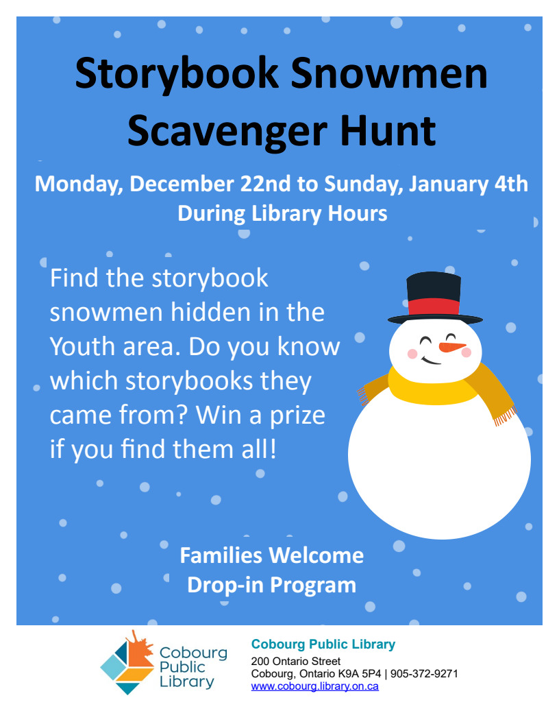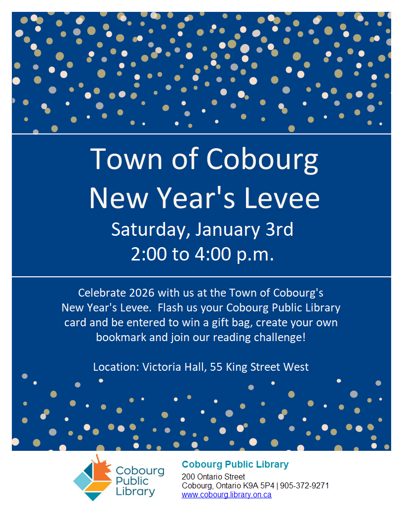 Drop in for a free movie and light refreshments. Movie lists available in the foyer at the Cobourg Public Library. Adults welcome.