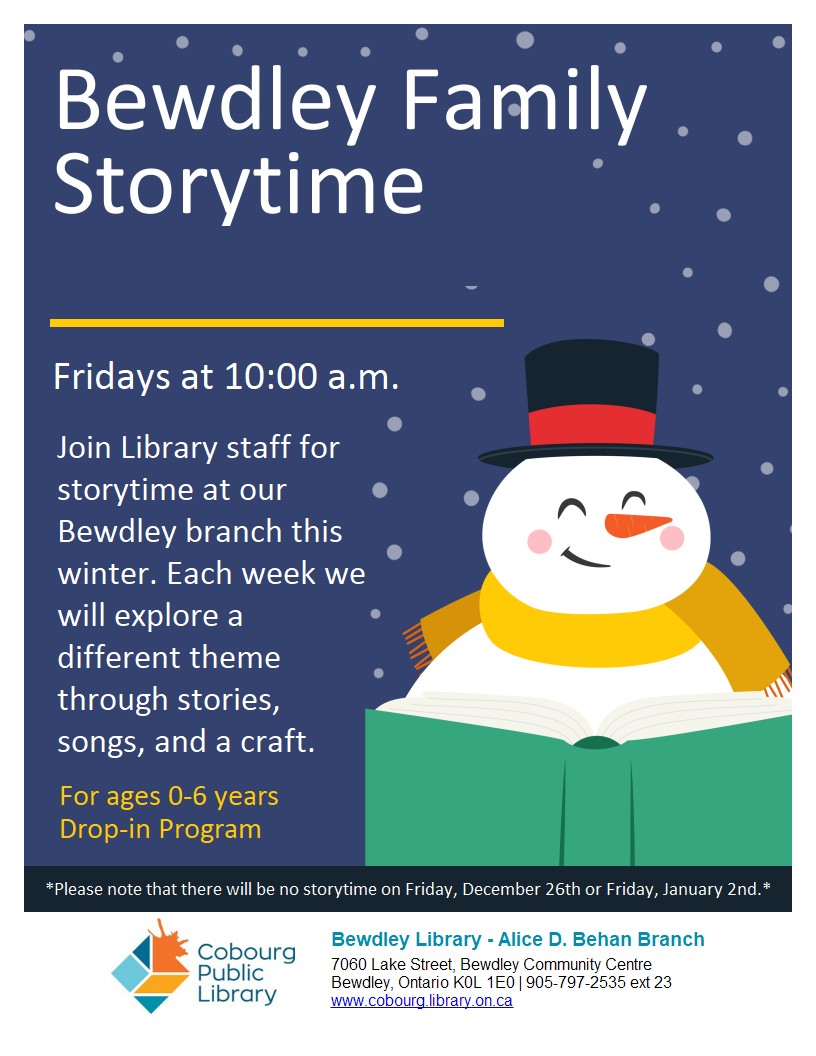 - Jan 16th: Cobourg Fire Department. Join Cobourg firefighters for a visit on local fire history, safety, and prevention—plus, you might get to see a real fire truck up close!